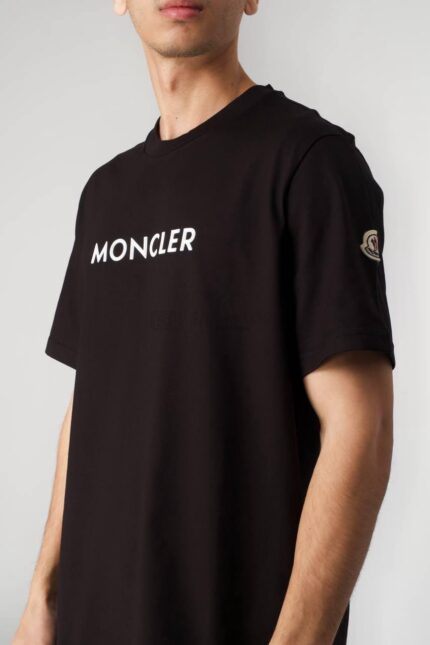 MONCLER SIMPEL T-SHIRT MET ARMLOGO ZWART
