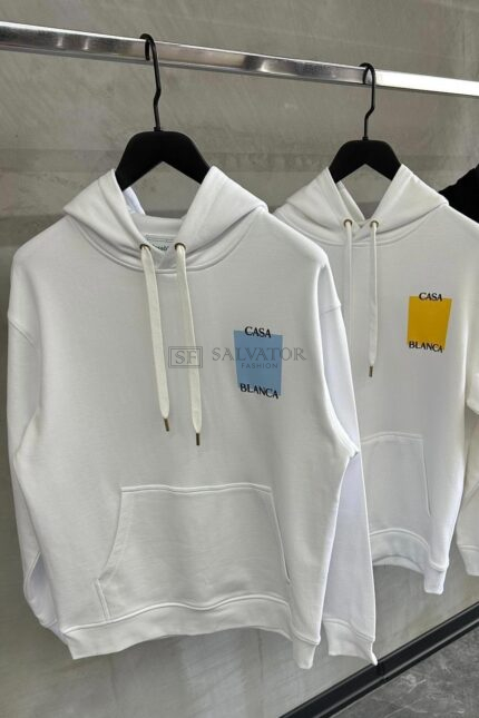 CASABLANCA HOODIE WIT MET BLAUWE LOGO