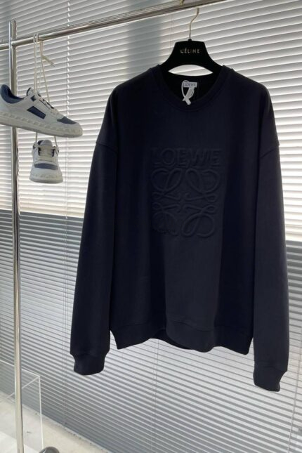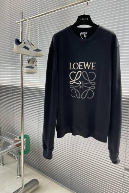 LOEWE BLACK ON BLACK EMBROIDERED LOGO SWEATER