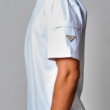 PRADA T-SHIRT NYLON LOGO OP ARM WIT