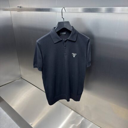PRADA TRIKO POLO ZWART MET GEBORDUURDE LOGO