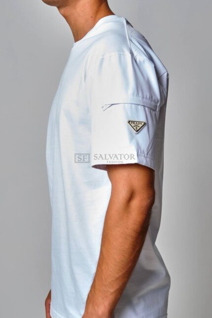 PRADA T-SHIRT NYLON LOGO OP ARM WIT