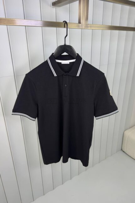 MONCLER POLO ZIJKANT LOGO ZWART
