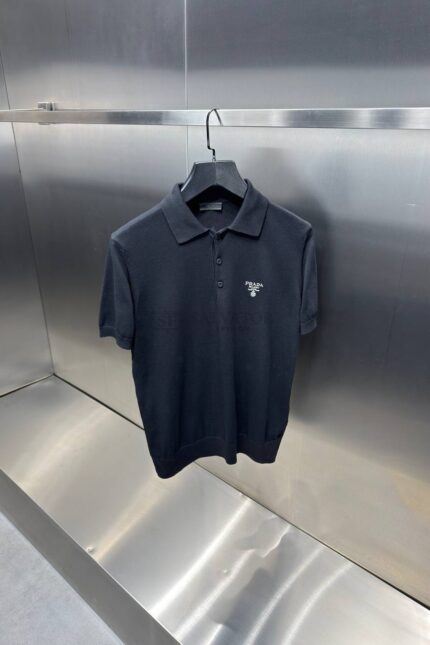 PRADA TRIKO POLO ZWART MET GEBORDUURDE LOGO