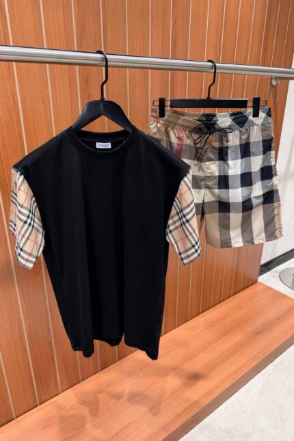 BURBERRY MOUWPATROON T-SHIRT ZWART