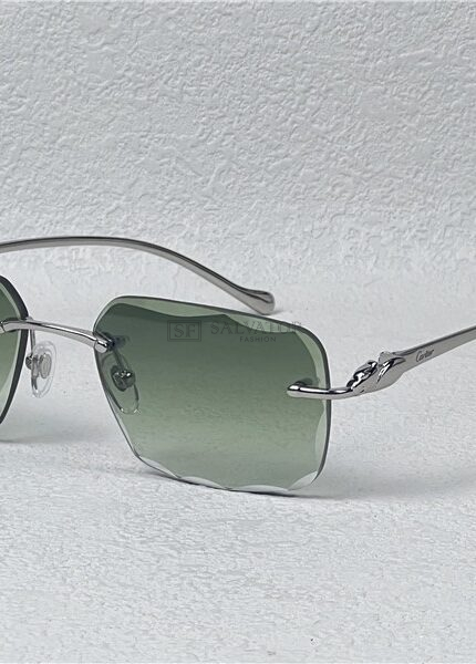 CARTIER ZILVERE PANTHER ZONNEBRIL GROENE GLAZEN