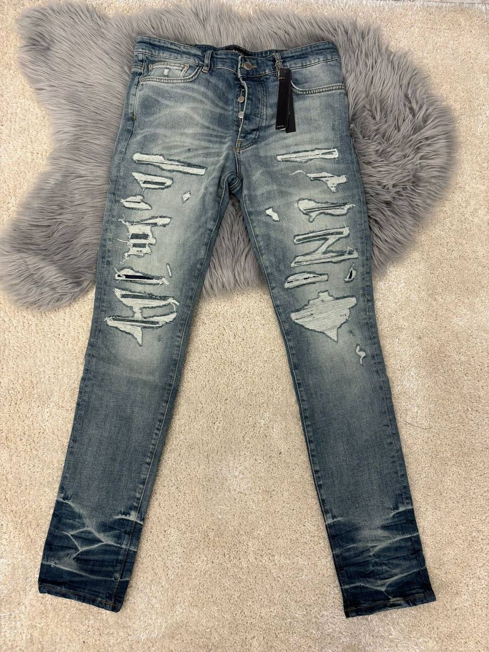 AMIRI ‘RIP AND REPAIR’ JEANS BLUE