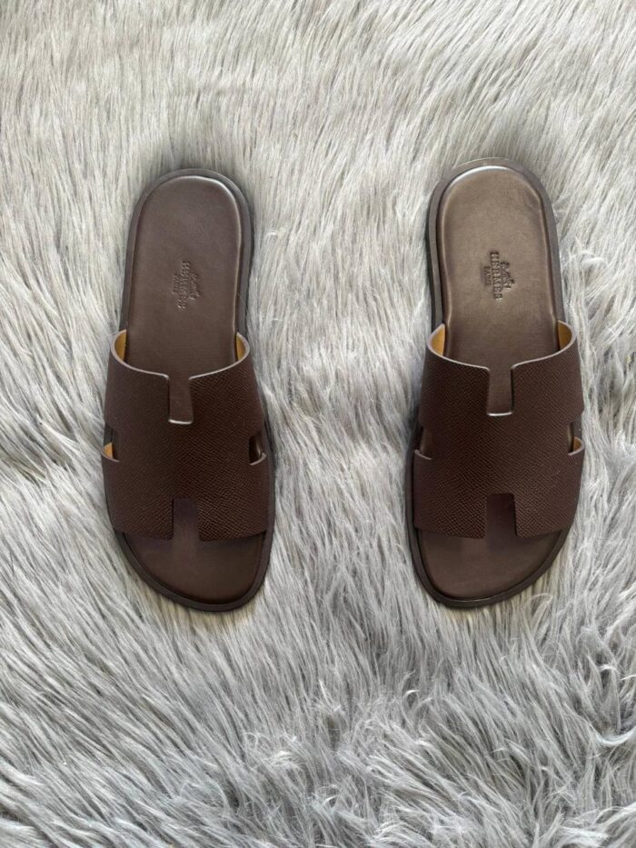 HERMES IZMIR SANDAL DARKBROWN LEATHER