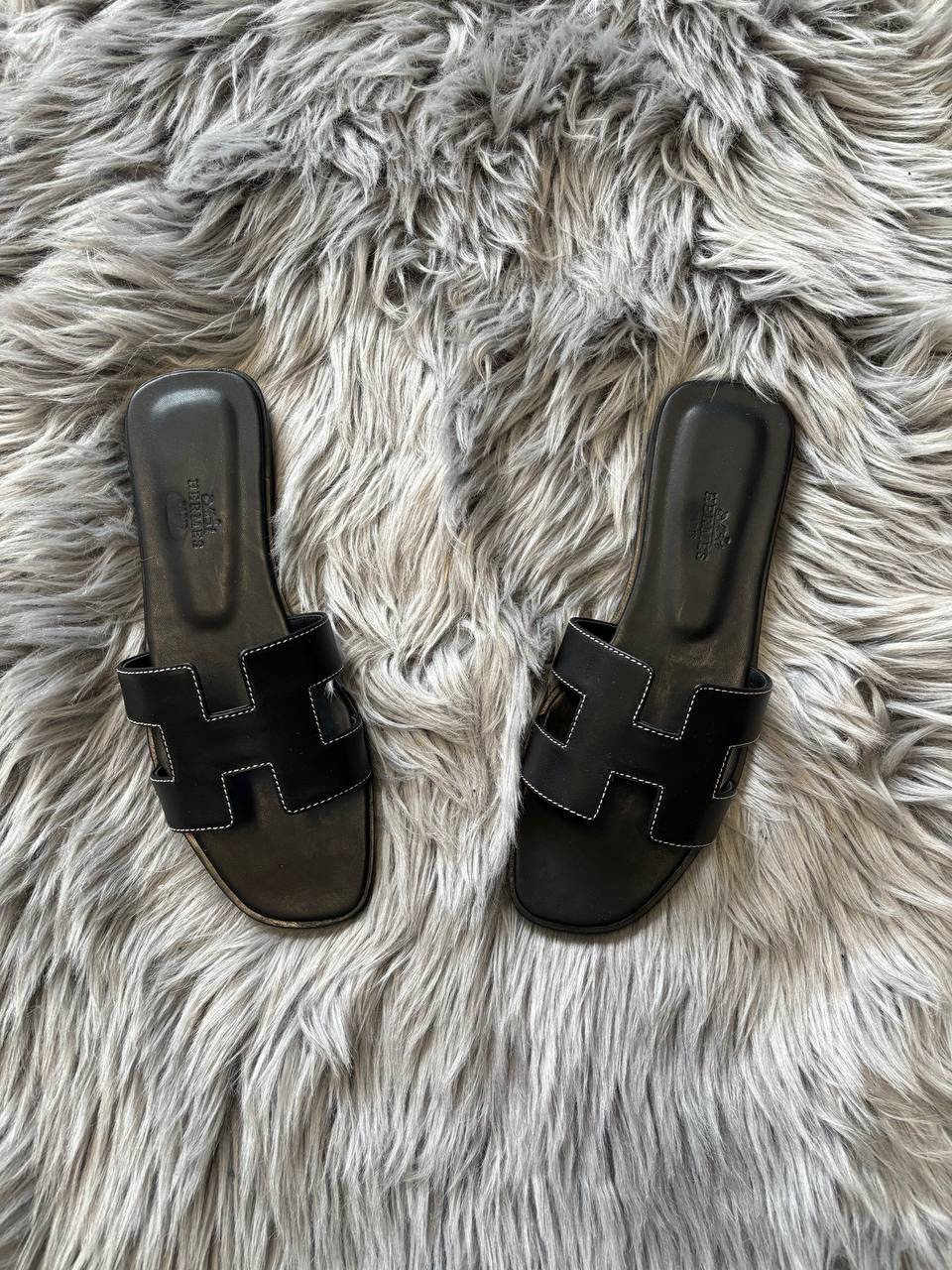 HERMES ORAN SANDAL BLACK LEATHER