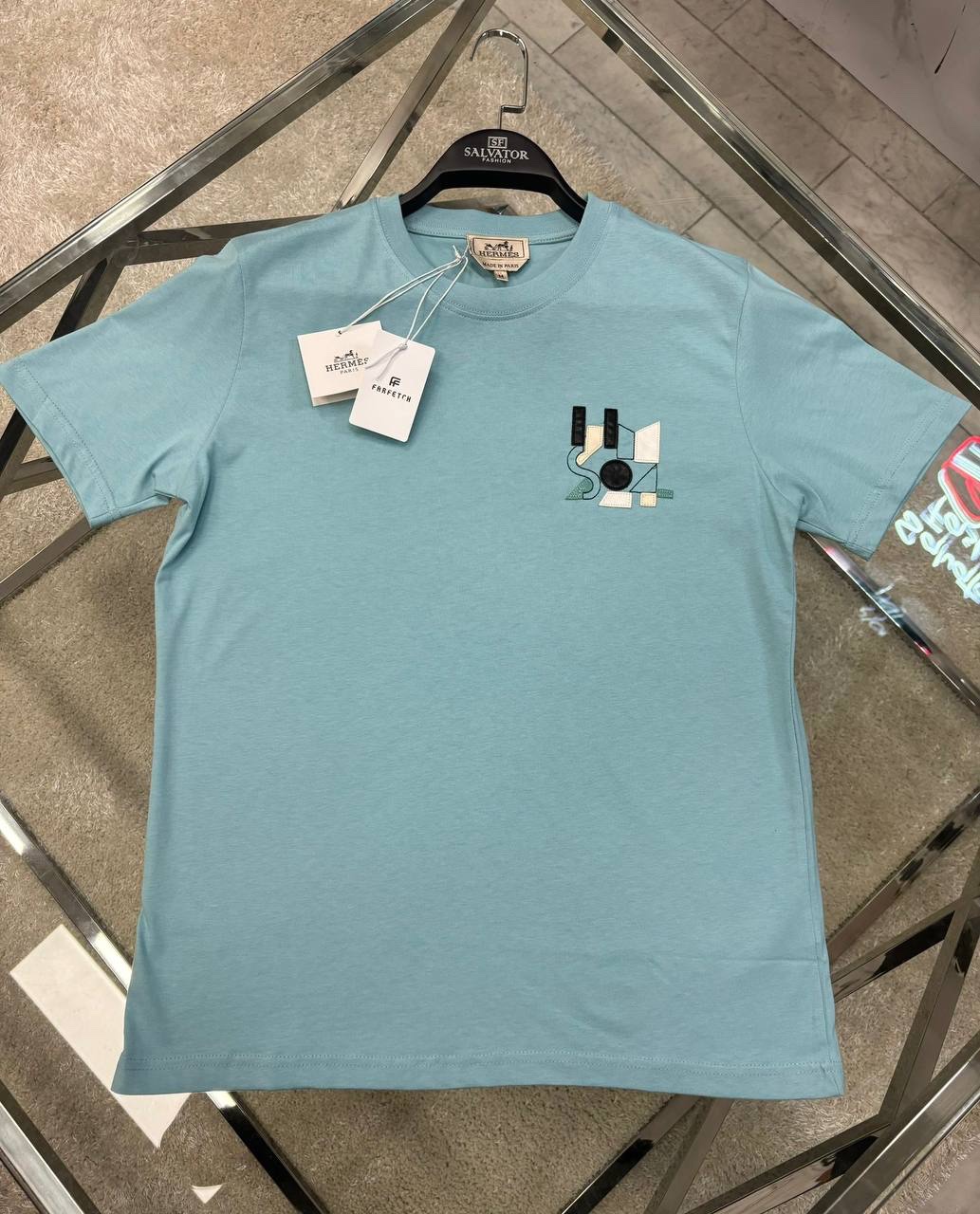 HERMES PUZZEL T-SHIRT LICHTBLAUW