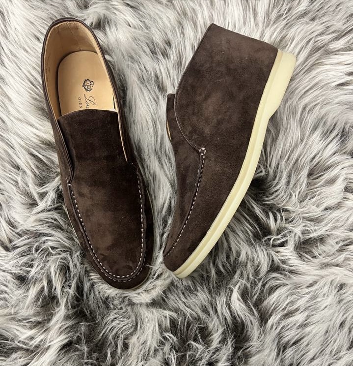 LORO PIANA OPEN WALK HOGE LOAFERS DONKERBRUIN