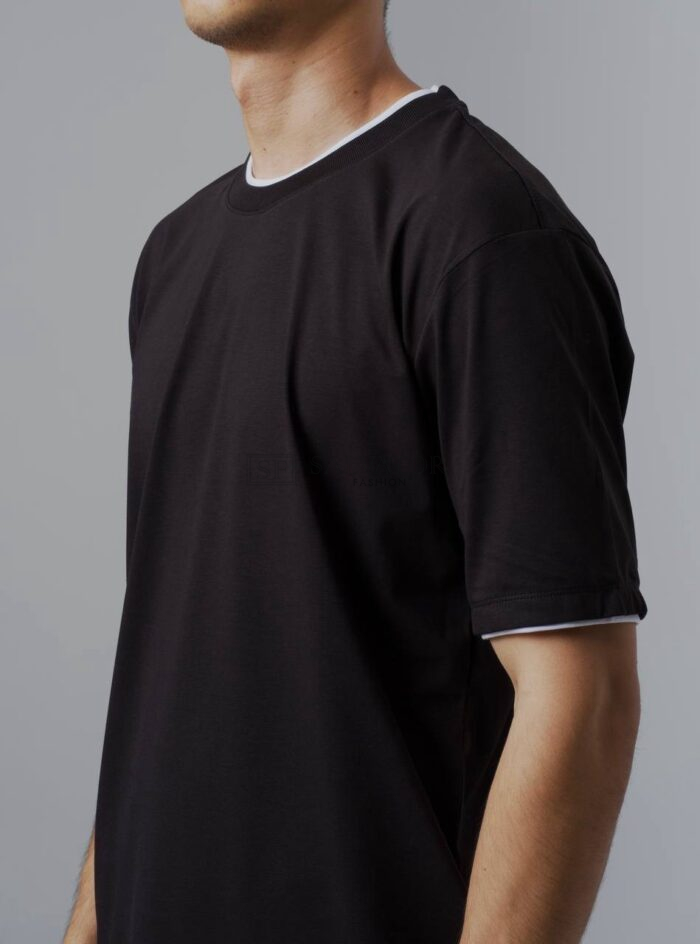 LORO PIANA SIMPEL T-SHIRT ZWART MET WITTE LIJNEN