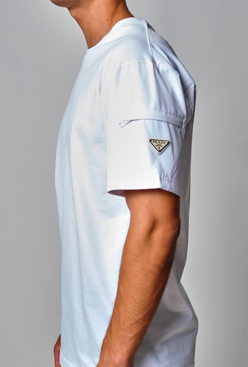 PRADA T-SHIRT NYLON LOGO OP ARM WIT