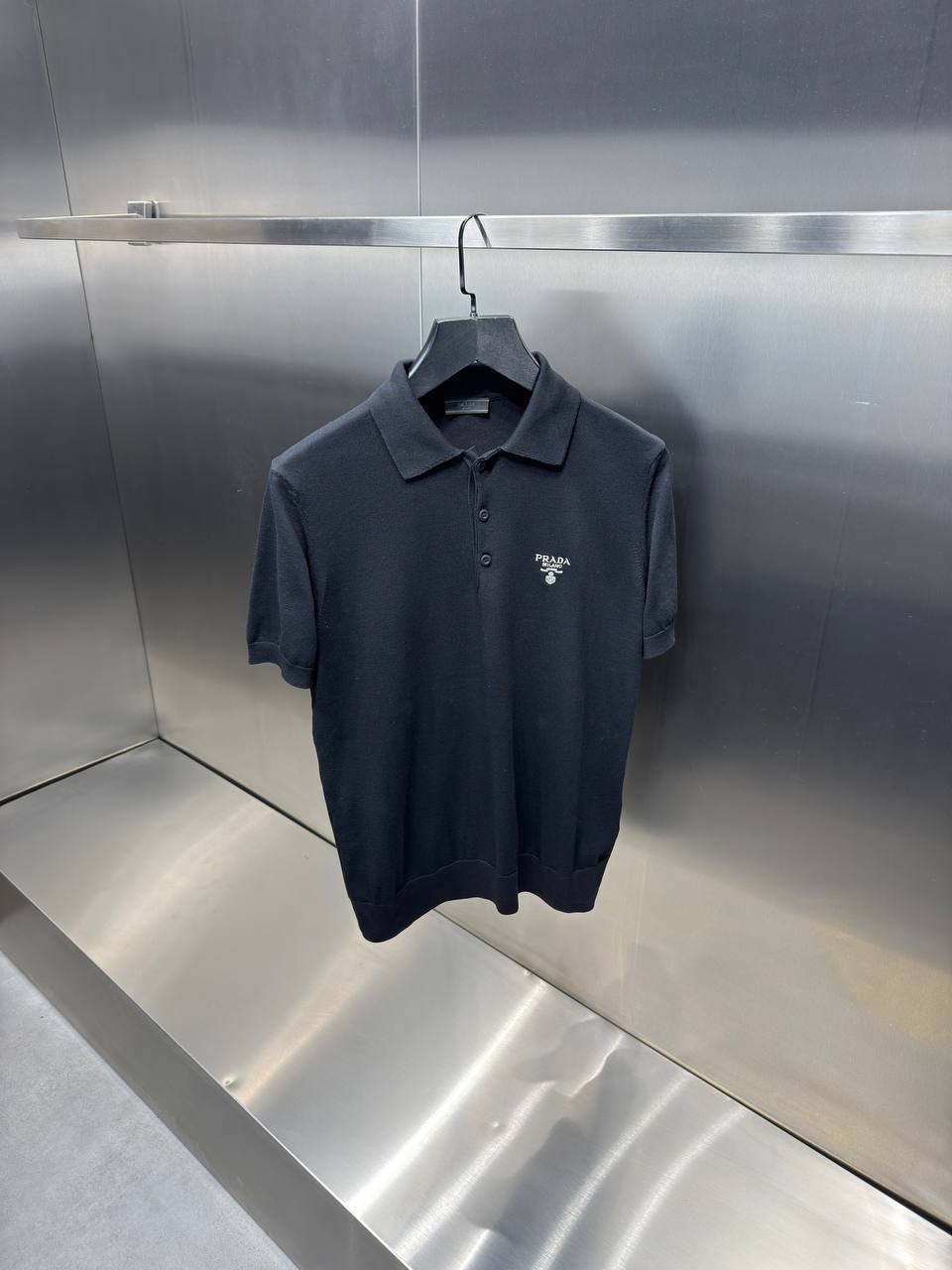 PRADA TRIKO POLO ZWART MET GEBORDUURDE LOGO