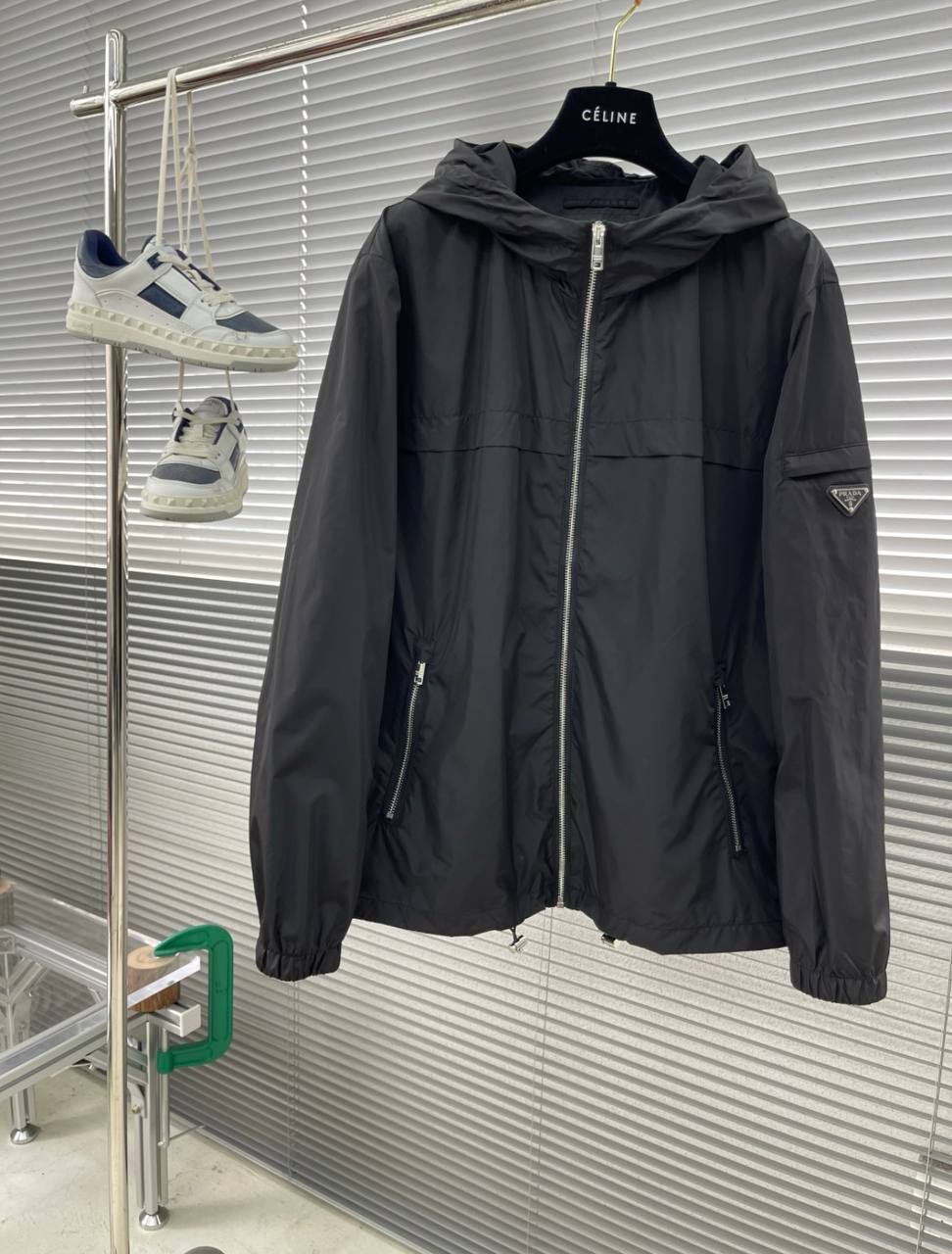 PRADA ZOMERJAS ZIJKANT LOGO ZWART MET CAPUCHON